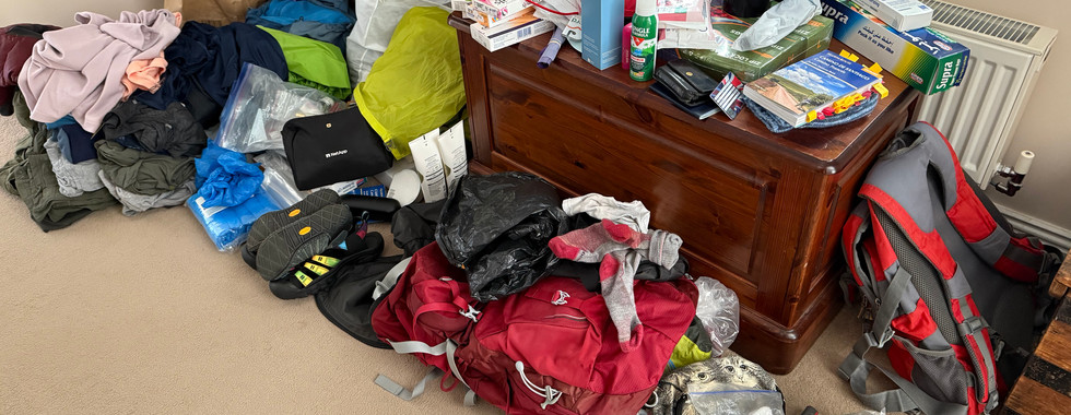 People who follow me know that I travel light, but this time my luggage is bigger and heavier than normal. I’ve decided to use my 60L pack for the bulk of my gear - this is what will be moved by Caminoways - and it weighs 16.6 kg. I’ll also be using a 30L pack for daily use. I’ll be carrying 2L of water. I’ve also brought electrolytes, perkkier bars for a daily jolt, and dubbins to keep my boots in shape. The other heavy things are my electrics, 3(!) pair of shoes, various medicines/strapping tapes/RX/medicine cabinet,and more T-shirts than usual.